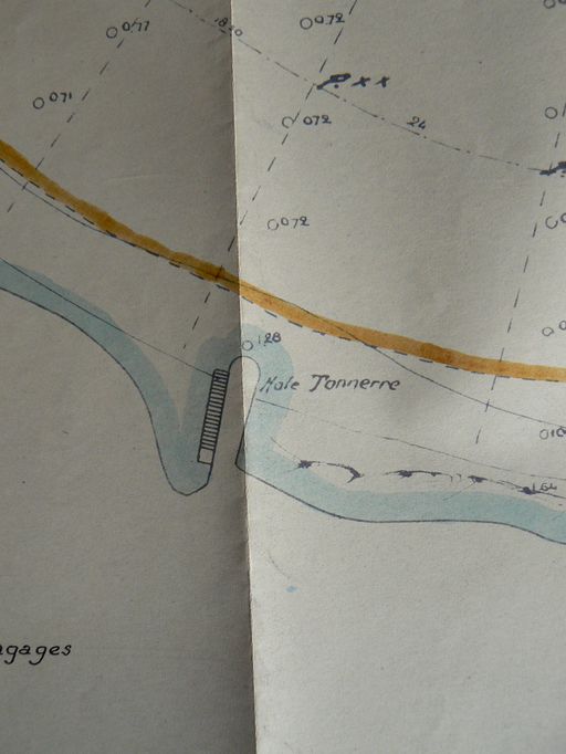 Sur la rive droite du port de Doëlan, à une trentaine de mètres en aval du débarcadère du feu amont, au nord de l´anse de Kersimon, se trouve un petit môle réalisé dans un très bel appareil en granit. Il apparaît pour la première fois dans les archives dans un plan général du port réalisé par le service des Ponts et Chaussées à la fin des années 1890, sous la mention « petit môle dit môle Tonnerre ».