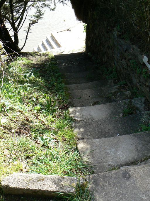 L´appontement de la rive droite se présente sous la forme d´un double escalier (respectivement de 10 et 19 marches) qui descend à la grève. Au sommet, un petit terre-plein de moins de 10 m² donne directement accès à la maison du gardien. L´ensemble réalisé en belles pierres soigneusement maçonnées repose sur le rocher.
