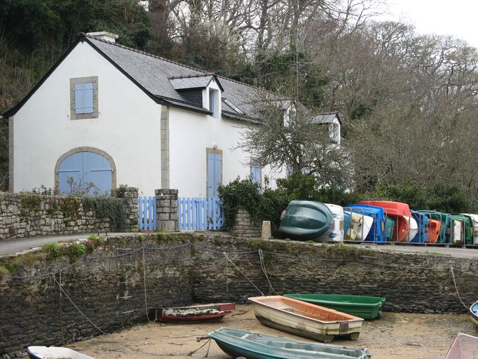 Le bâtiment, d´une architecture très simple, se situe à l´extrémité du quai, légèrement à l´écart des autres maisons du port du Pouldu. Placé en partie sur un espace remblayé (le mur de quai est probablement d´époque ici), adossé à une falaise, il n´est accessible que par un petit chemin piétonnier. De base rectangulaire, il comporte un étage sous combles, éclairé grâce à trois lucarnes jacobines côté Laïta et une ouverture dans le pignon nord-est. Au rez-de-chaussée, dans le pignon nord-est, la plus importante des ouvertures était sans doute très utile pour entrer le bateau. Les encadrements des ouvertures et le chaînage d´angle sont en pierres taillées apparentes. Actuellement, les murs et la souche de cheminée sont enduits de couleur blanche tandis que les volets et les portes sont de couleur bleu ciel. Le toit est en ardoise. Même si rien ne rappelle sa fonction d´origine, ce bâtiment à la destination originale, bien entretenu, semble avoir été modérément modifié.