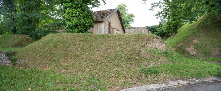 Chaque magasin à poudre est entouré par un haut mur en maçonnerie de moellon suivant le relief et délimitant une enceinte de sûreté. L’entrée se fait par une porte charretière encadrée de deux piliers en pierre de taille.