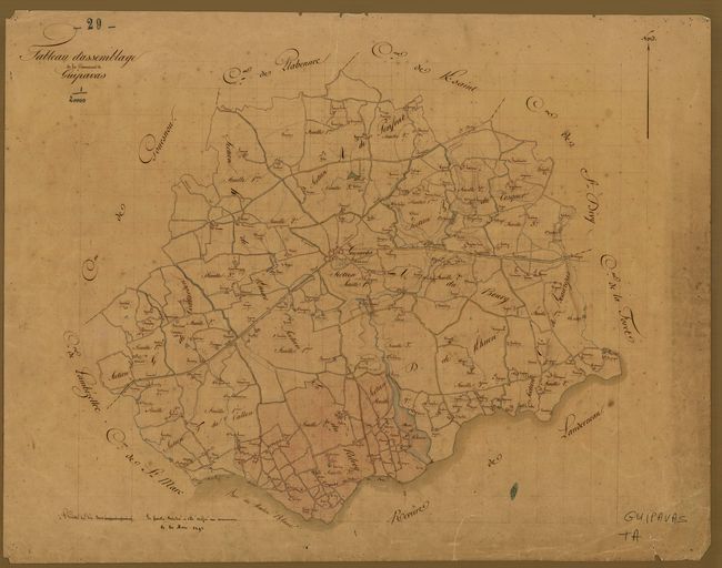 Cadastre parcellaire de la commune de Guipavas : tableau d'assemblage et feuilles de section, 1828.