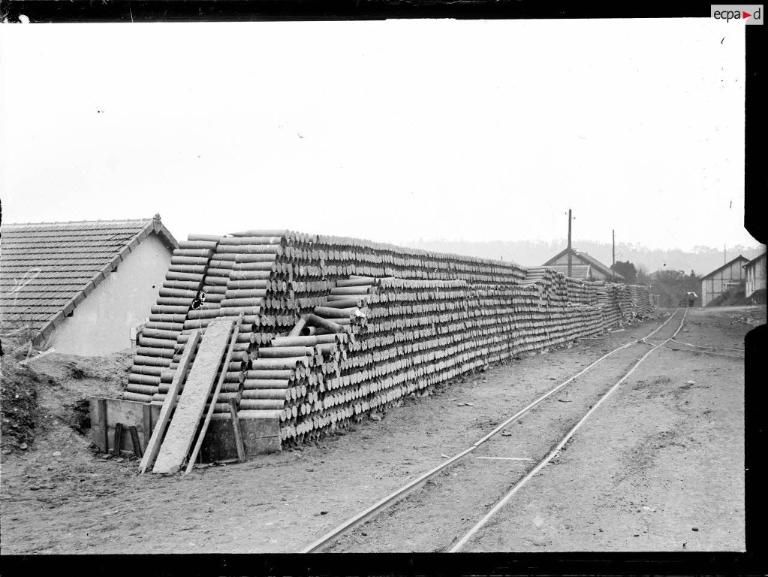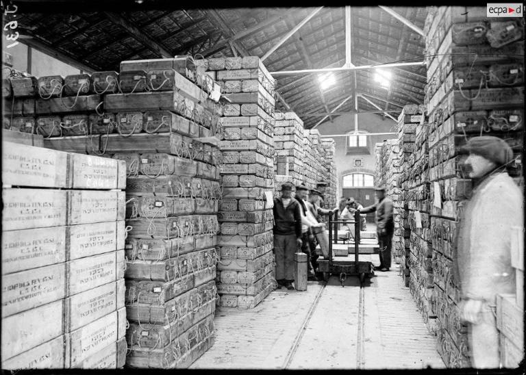 Dans l’enceinte de la pyrotechnie, ateliers et magasins sont desservis par des voies ferrées étroites de type Decauville (cf. reportage photographique sur les activités du port de Brest en mars 1916).
