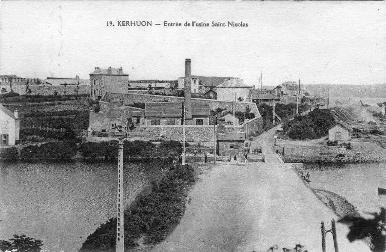 Par décret du 24 novembre 1917, l’anse de Kerhuon, plusieurs fermes - Saint-Nicolas, Kerdidrun, Lesquibou, Kersalou et Kerléon [sic], la métairie et le château de Kerhuon appartenant à la famille Paulze d’Ivoy de la Poype et des terres pour un total de 71,43 ha sont annexés à la pyrotechnie par expropriation. Il s’agit du plus grand agrandissement de la pyrotechnie de Saint-Nicolas avec de plus, l’installation de nouvelles voies ferrées reliées à la ligne Paris-Brest par un troisième embranchement.
