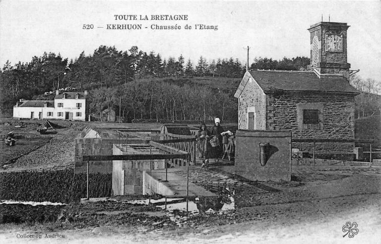 Une photographie de 1863 montre les pieux de soutènement du parc à bois (on dit que les bois sont enclavés) avec en arrière-plan le viaduc. Revendue par l’État en 1898, l’anse de Kerhuon, d’une surface de 42 ha (et le chemin à l’ouest, n° 914) est de nouveau acquise par l’État en 1917 par expropriation de Marie-Adèle Bonamy (1864-1938), épouse de Roger Paulze d’Ivoy de la Poype, propriétaire du château de Kerhuon.