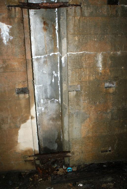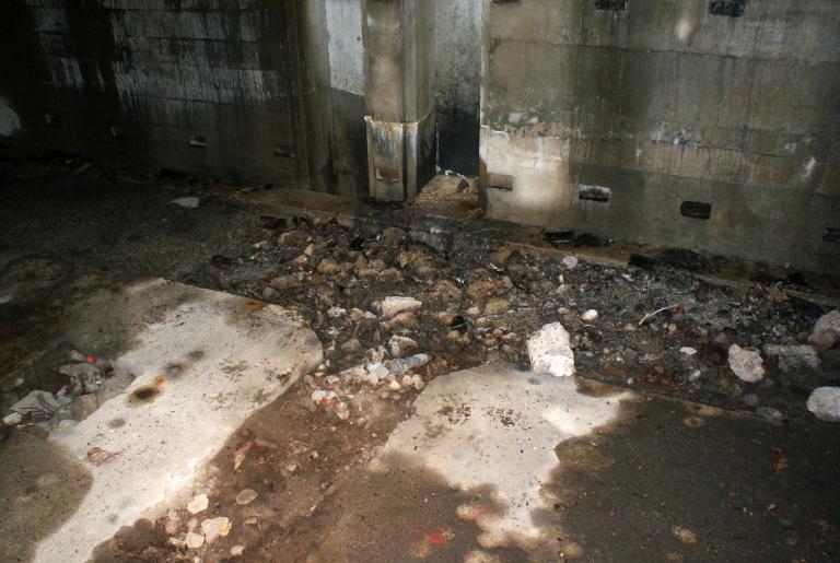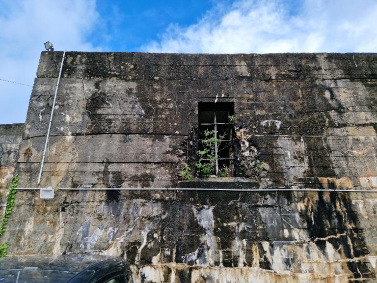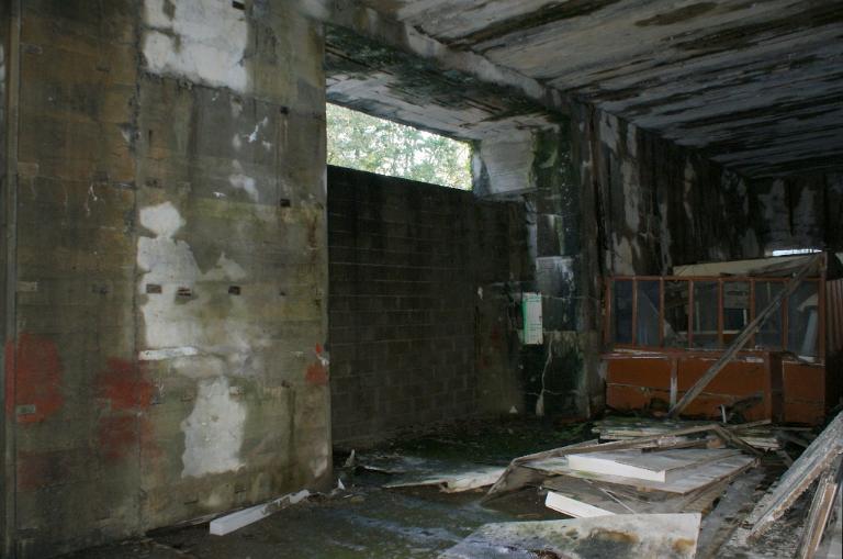 A l'exception de l'entrée du sas sud qui est fermée par une porte métallique, toutes les autres ouvertures basses ou à mi-hauteur sont murées par des parpaings. Des vestiges de châssis de fenêtre à petits carreaux sont visibles sur deux ouvertures hautes.