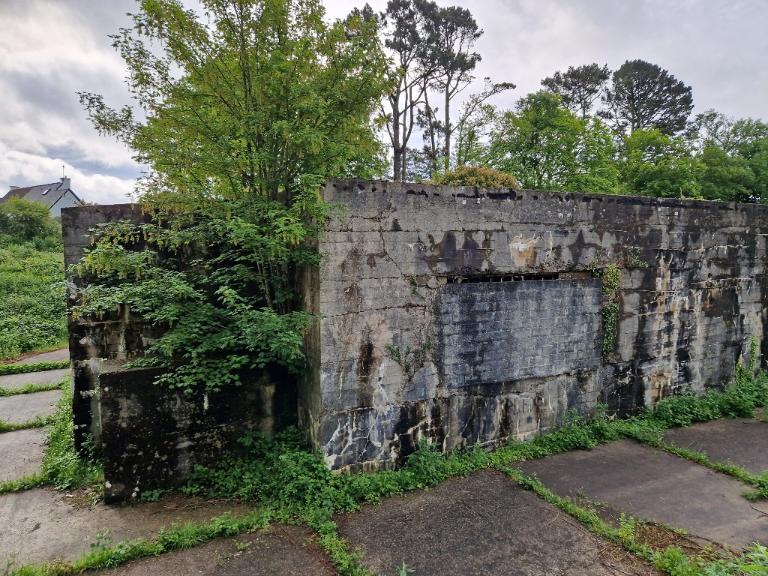 En 2025, ce bunker se situe dans l’emprise de la clinique psychiatrique de Pen an Dalar (créée en 1947) : des véhicules sont stationnés dans cette parcelle fermée par une barrière.