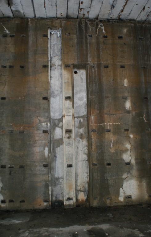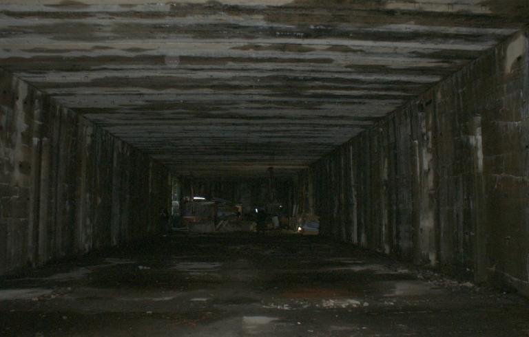 La dalle de couverture, supportée par des poutres en béton précontraint du système Hoyer (Hoyerbalken) avec fils d’acier, mesure 1 m d’épaisseur.