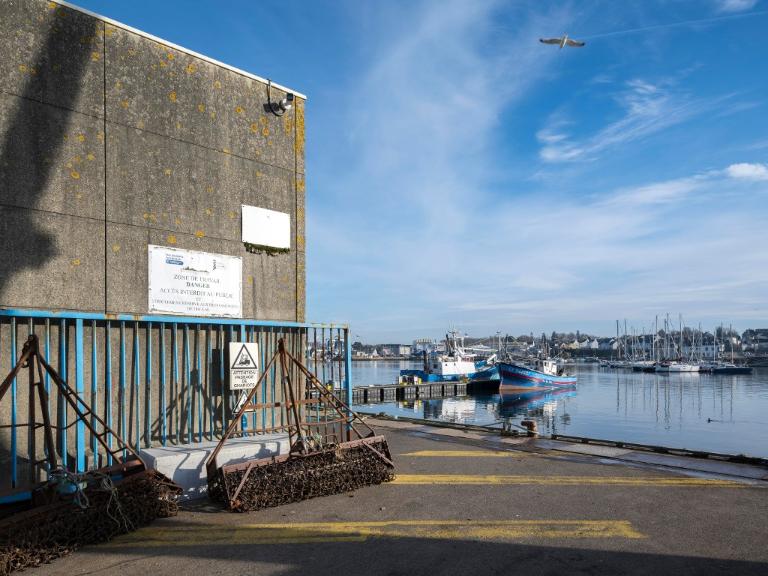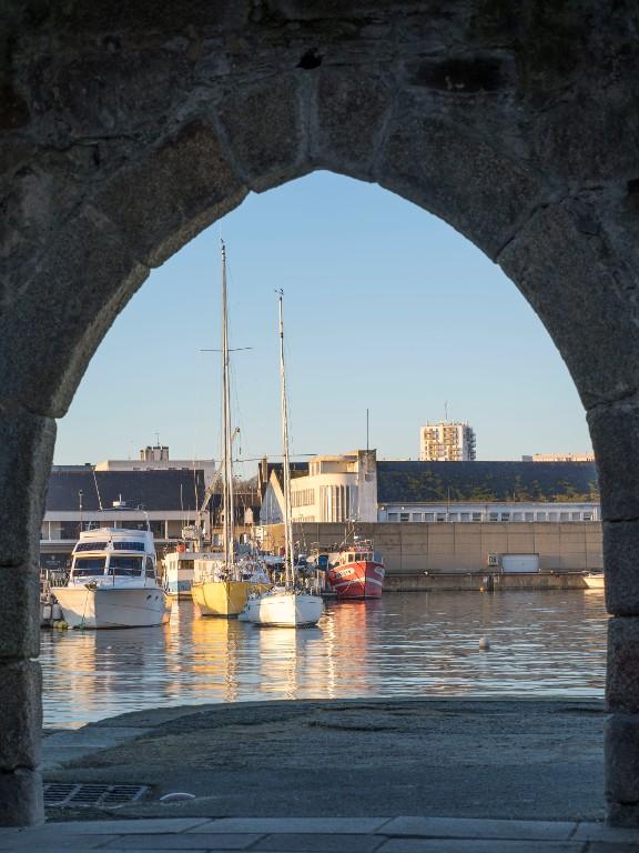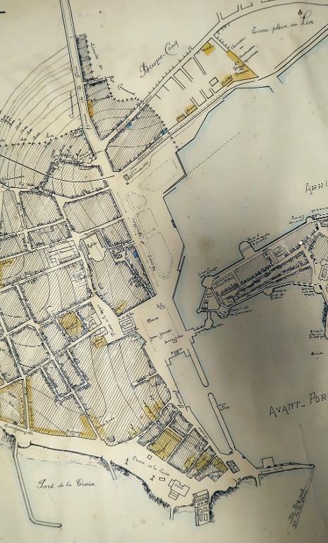 L'étude s'articule autour des quais construit entre le 18e siècle et le 20e siècle ; quais qui sont une réponse technique à des demandes économiques liées à la pêche puis à la réparation navale. Ils sont parfois associés à des môles dont la fonction est de protéger les zones de mouillage et de déchargement. L'étude de leurs évolutions (implantation ; matériaux de construction ; superficie) met en avant que chaque changement de modèle économique induit une réduction de l'espace maritime. Cela se lit sur le front bâti de l'avenue du Docteur Pierre Nicolas, de l'avenue de la Gare et de la rue Quai Carnot, front bâti de plus en plus éloigné du port par des secteurs aujourd'hui dédiés au parking. La rue du 19 mars 1962 serpente selon les contours de l'anse du Lin comblée (1882-1908 ; 1927-1939). De même, de l'anse du Roudouic ne reste que la toponymie pour se souvenir que la zone industrielle s'est implantée sur une anse comblée.