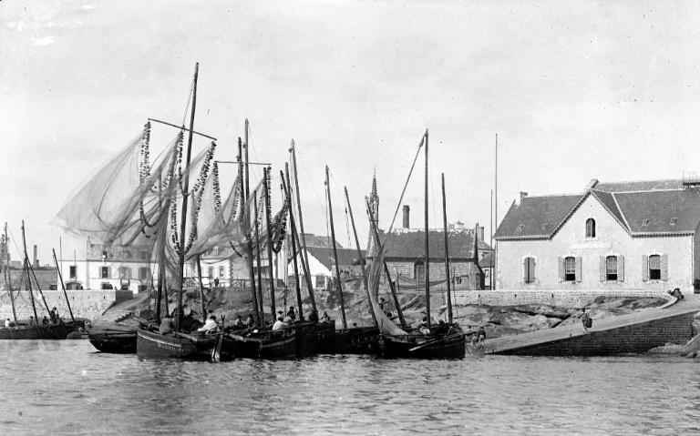 Le développement des conserveries au cours du 19e siècle impacte durablement le quartier. Afin de rationnaliser l'approvisionnement des conserveries en poissons, la construction d'une infrastructure portuaire, face aux usines, est souhaitée (conseil municipal du 8 mars 1877). Le môle de la Croix, rapidement dénommé quai nul, est construit entre 1884-1901. L'activité de pêche étant, à la fin du 19e siècle, essentiellement concentrée sur le port de la Croix et l'avant-port, le choix du site d'implantation de la criée, construite en 1893, se porte sur la pointe de la croix, entre la chapelle et le vivier-laboratoire (1859). En 1901, un abri du marin est construit, complétant ainsi les architectures typiques du monde maritime de la fin du 19e et du début du 20e siècle.