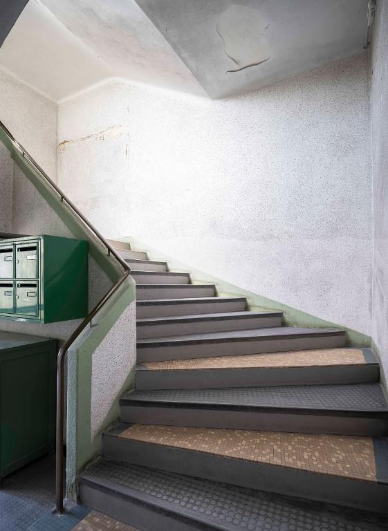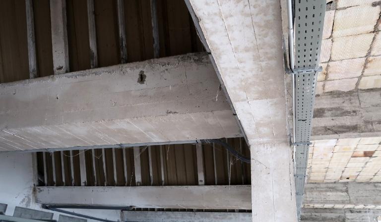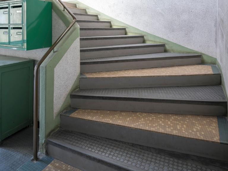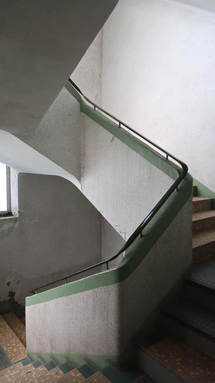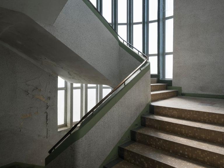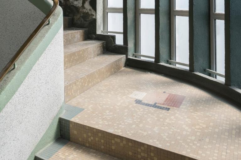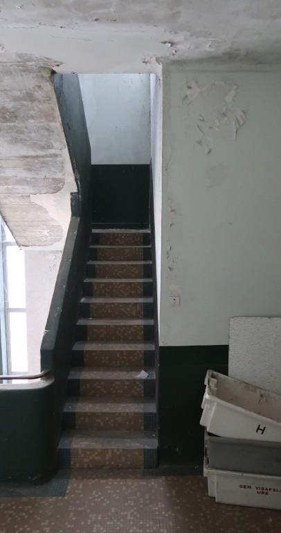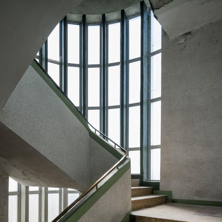 Bâtiment en béton ; orienté face au bassin de l'arrière-port, longé au nord par les anciennes voies ferrées ; 3 niveaux ; section circulaire sur les 3 niveaux accueillant l'escalier de distribution en béton ; verrières ; mosaïque de carreaux ciment coloré représentant des navires au sol des couloirs et paliers.