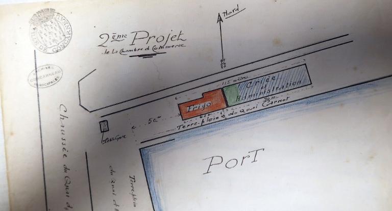 Le projet architectural de la criée intègre un bâtiment administratif et un frigorifique dont l'implantation est prévue sur le nouveau terre-plein construit en 1936. L'alignement est le suivant :