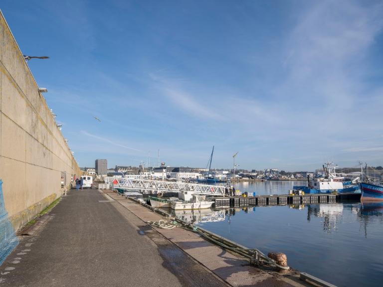 L'implantation de la criée de Concarneau sur le quai Carnot est effective depuis 1938 suite à la création d'un terre-plein en 1936, repoussant vers le sud de l'arrière-port le quai, augmentant ainsi la superficie terrestre dédiée à l'usage portuaire.