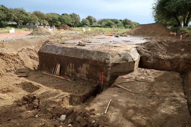 Ce bunker a été déblayé en septembre 2023 pour construire une maison d’habitation : intégré au sous-sol, il sert partiellement de support à la construction.