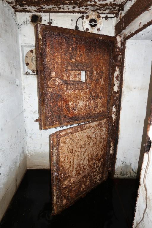 Ce bunker conserve uniquement la porte blindée à deux vantaux de la petite pièce annexe recevant normalement un puits pour péricope (ici, ce n’est pas le cas). Si leurs huisseries sont en place, les deux portes blindées du sas ont été déposées au chalumeau après-guerre.