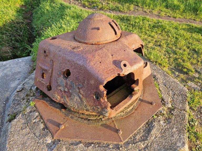 Saisie, puis remployée par l’Allemagne nazie dans le Mur de l’Atlantique, cette tourelle désignée "Panzerkampfwagen 35R 731 (f)" est ici implantée en position de char (Panzerstellung). Son canon de 37 mm est désigné par l’occupant "3,7 KwK 144 (f)" ; sa mitrailleuse désignée "Mg 311 (f)".