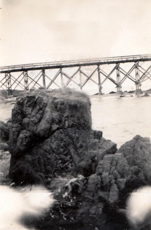 La passerelle apparaît détruite en 1952 (dès 1945 ?) sur une photographie aérienne.