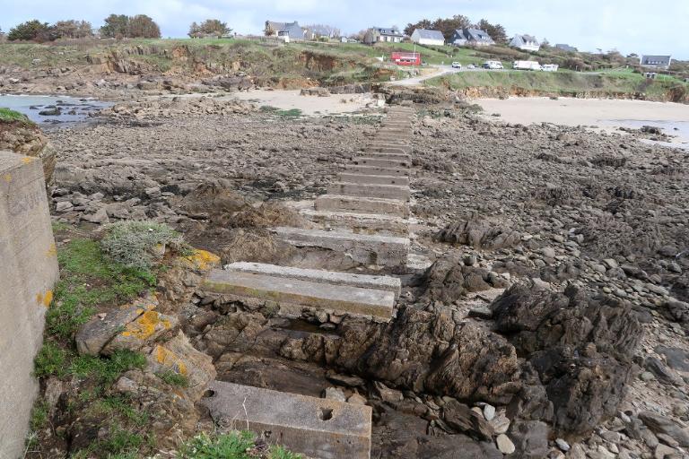 Cet ensemble fortifié a vraisemblablement été construit dans le premier semestre 1943 par l’Allemagne nazie, sous maîtrise d’œuvre de l’Organisation Todt. La passerelle a permis d’approvisionner le chantier en s’affranchissant des marées.