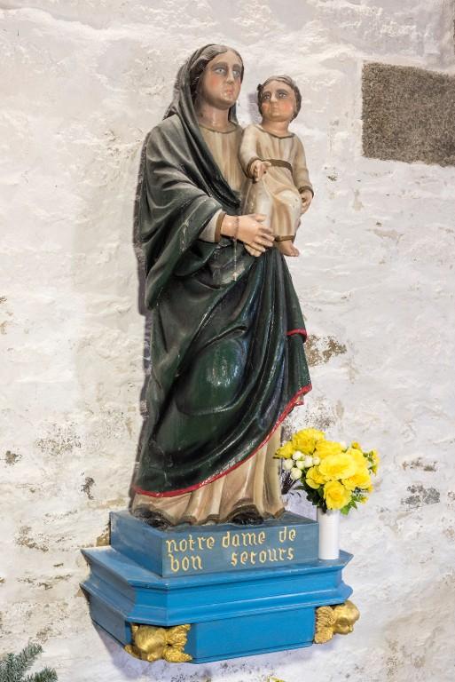 -Groupe sculpté : Vierge à l'Enfant dite Notre-Dame de Bon-Secours (bois, polychrome),