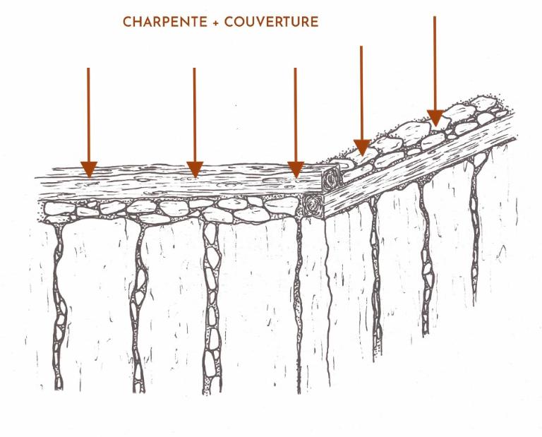 Les murs gouttereaux sont presque systématiquement élevés en orthostates, tandis que les pignons relèvent d’une mise en œuvre plus courante, associant maçonnerie à double parement en moellon ou pierre de taille de granite. Cette différence s’explique par des contraintes structurelles : le pignon, support de la cheminée, nécessite une épaisseur de mur plus importante, généralement comprise entre 70 et 80 cm.