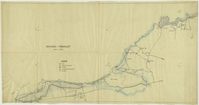 Selon les plans allemands de minage, les ensembles fortifiés "A 1" (Porz Guen à Plouescat), "A 5" (pointe d’Enez-Vihan à Tréflez), "A 6" (pointe située face à la roche Malban à Tréflez) et "A 8" (Kerguélen à Plouénour-Trez) sont achevés au 12 mars 1943, les autres ensembles fortifiés sont encore en construction (im Bau). Une carte datée du 1er juin 1943 figure l’état des constructions des positions du "verrou de Goulven" (Goulvenriegel) avec des positions de campagne - en construction ou achevées - implantée en seconde ligne. Plouider, Tréflez, Plouescat, Goulven, Plounéour-Trez et Brigogan étaient desservis par le chemin de fer ce qui facilite l’approvisionnement des chantiers de construction.