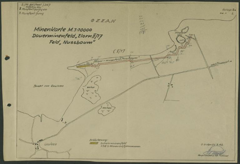 Posés d’octobre 1942 à mars 1943, des champs de mines permanents interdisent la traversée des dunes entre les ensembles fortifiés. Ils sont connus par les archives allemandes de minage conservés par les Archives départementales du Finistère. Les mines sont implantées, entre le trait de côte et le fossé antichar, juste derrière les dunes. On comptabilise ainsi au moins 4 740 mines réparties dans cinq champs de mines numérotés "Elorn II/17" - "Nussbaum" (noyer) et "Elorn II/30" - "Linde" (tilleul), "Eiche" (chêne), "Birke" (bouleau) et "Ahorn" (érable). Il s’agit d’engins de type S. Minen, "S" étant l’abréviation de Schrapnellminee, mines antipersonnel à éclats dites aussi mines bondissantes.