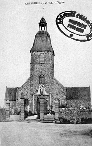 Cherrueix, l'église. Carte postale, début du 20e siècle. In : LOYANT, Jean-Claude, MARION, Patrice. Dol-de-Bretagne et le marais. Rennes : Alan Sutton éditions, 1994. (Mémoire en images).