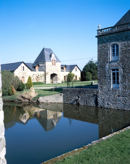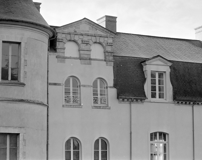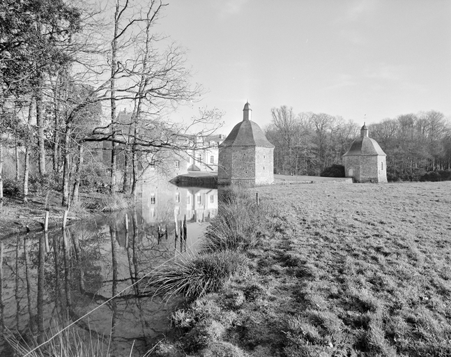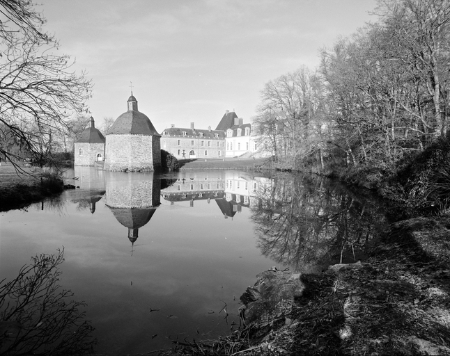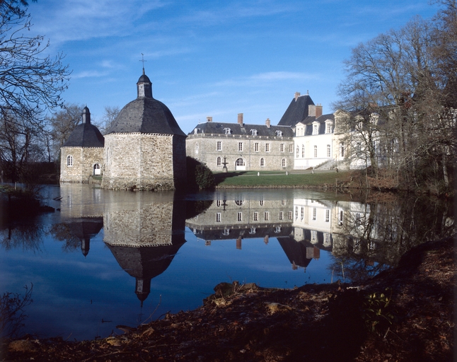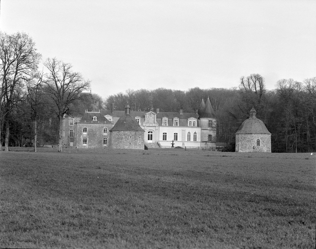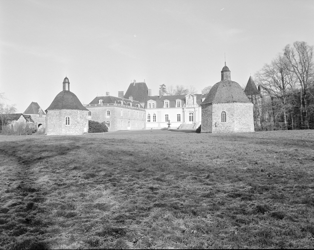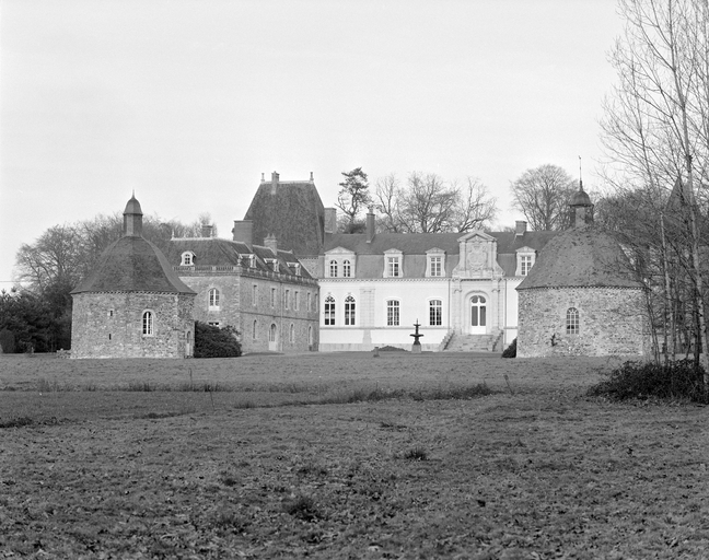 Château construit sur les vestiges d'un manoir du 16e siècle (?), dont subsiste l'aile sud-ouest très remaniée aux 18e (passage couvert portant la date 1781) et 19e siècles. Vers 1600, projet de château en rez-de-chaussée surélevé et étage de comble à deux pavillons symétriques et deux escaliers latéraux. De ce projet, seuls furent réalisés le pavillon et l'escalier nord-ouest ainsi que le corps de logis central. A partir de 1850-60, importants travaux par la famille Hay des Nétumières : ajout de deux tours à l'extrémité est du logis, reprise totale de la façade sud du logis avec ajout d'un perron central monumental, comblement des douves qui bordent le côté est de la cour, suppression des bâtiments qui flanquaient à l'ouest l'aile sud-ouest du corps de logis, construction d'un ensemble ferme-communs plus à l'ouest (date portée : 1872) et tracé du parc à l'anglaise. La chapelle mentionnée en 1668 est restaurée vers 1777 (date portée sur la clé de voûte de la porte d'entrée) et bénite le 23 juillet 1781.