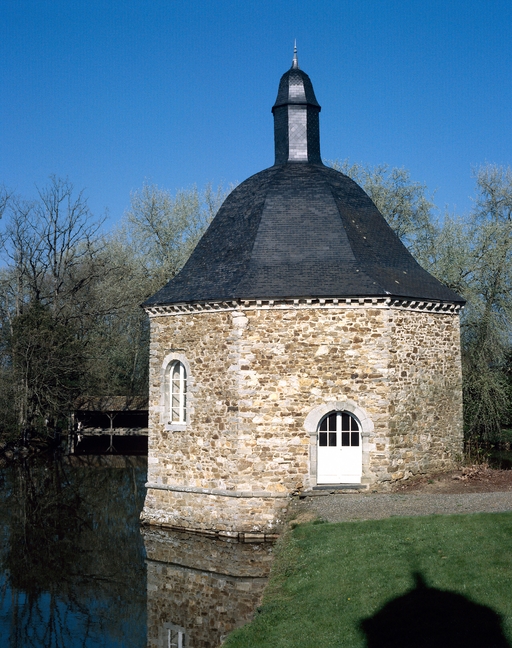 Le corps de logis principal comporte un rez-de-chaussée surélevé et un étage de comble, l'aile sud-ouest, un étage carré, le pavillon nord-ouest deux étages carrés. Les angles sud-est et sud-ouest de la cour bordée par des douves sont occupés par deux pavillons octogonaux couverts d'un dôme polygonal dont l'un abrite la chapelle. Les entourages des baies de l'aile sud-ouest et celles du pavillon sont en grès et granite. Les colonnes et le fronton au-dessus de la porte d'entrée sont en tufeau. Bouches à feu dans le pavillon en face de la chapelle.