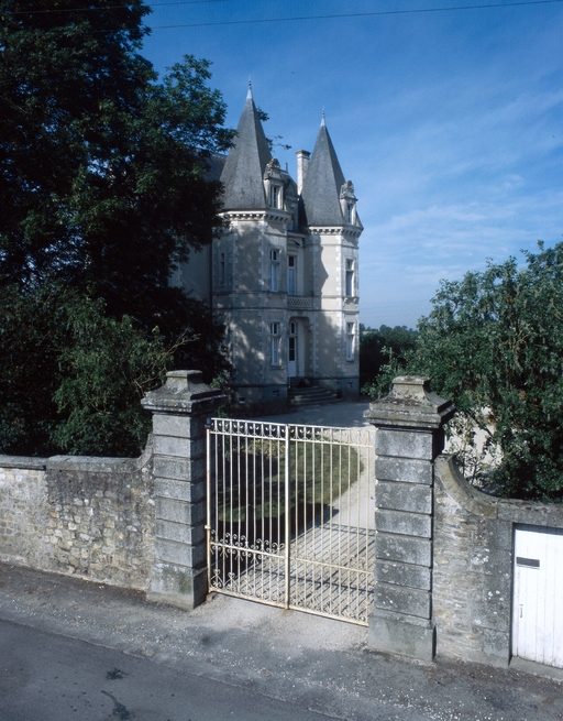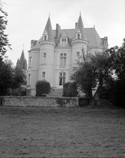 Edifice de plan massé symétrique implanté dans un parc situé en village. Le corps de bâtiment est flanqué, au nord, de deux tours de plan polygonal (formant châtelet ?) entre lesquelles s'élève le degré droit de l'entrée, et au sud, de deux tours circulaires hors-oeuvre. Ces dernières, couvertes en poivrière, encadrent la travée axiale couronnée d'une importante lucarne au niveau du toit. Les murs sont en moellon enduit avec soubassement et bandeau inférieur en pierre de taille de granite, chaînes, bandeaux supérieurs, corniche et encadrement des baies en tufeau peint. Entrée centrée, tour d'escalier sur l'angle, cheminée-fenêtre.
