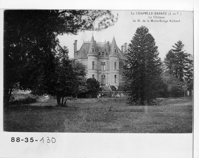 Il s'agit vraisemblablement du château de Boisrie construit en 1871 par Jacques Mellet pour M. de Gennes. A Richard de la Motte-Rouge au début du 20e siècle.