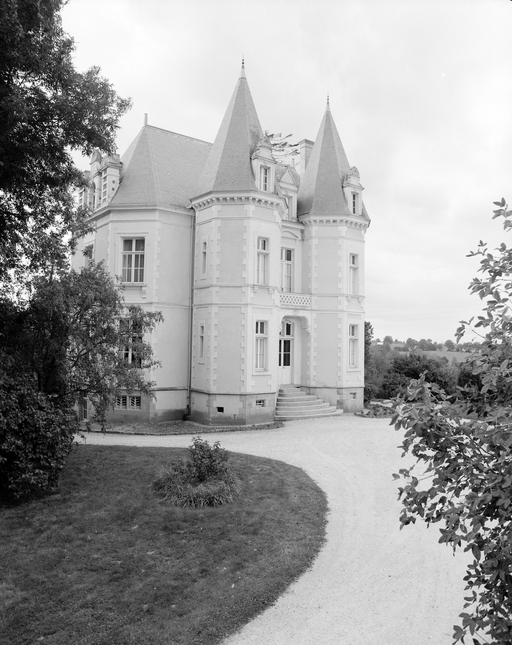 Typologieschâteau à entrée centrée, tour d'escalier sur l'angle, cheminée-fenêtre ; ex-nihilo (?). Néo-Renaissance