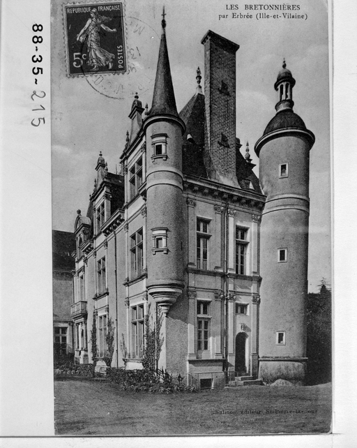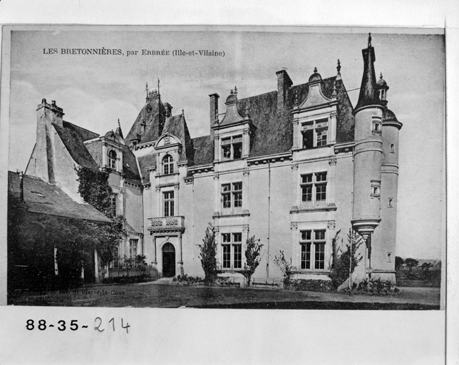 Le 1er manoir, peut-être construit pendant la 1ere moitié du 15e siècle, a été détruit pendant la Ligue. Les parties ouest et nord (pavillon à 5 niveaux) ont été reconstruites vers 1600 par la famille Morel, ainsi que la chapelle (date 1598 et inscription sur la pierre de fondation remontée dans la chapelle actuelle : A M SR DES BRETONNIERES MA FAICT FAIRE) . Vers 1830-1840, la famille Berthois, originaire de Vitré, fait construire la partie est et rhabiller le reste dans le sytle néo-Renaissance. La chapelle est construite en 1871.