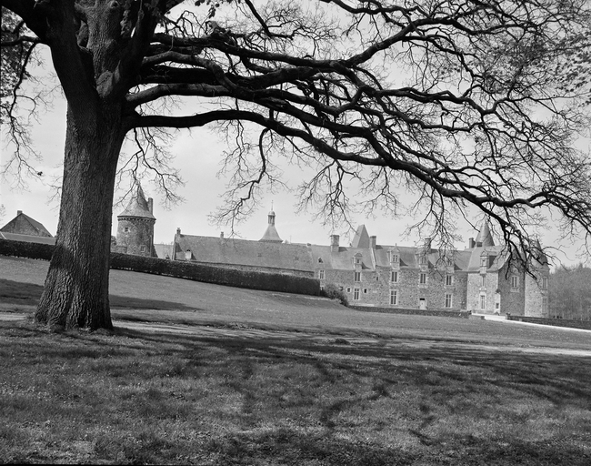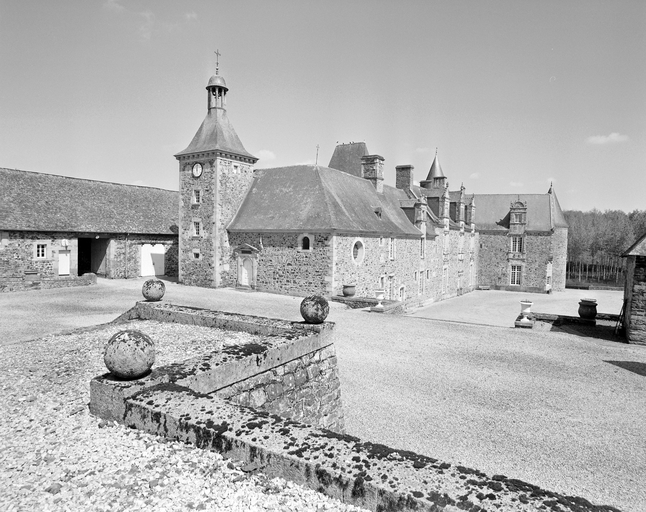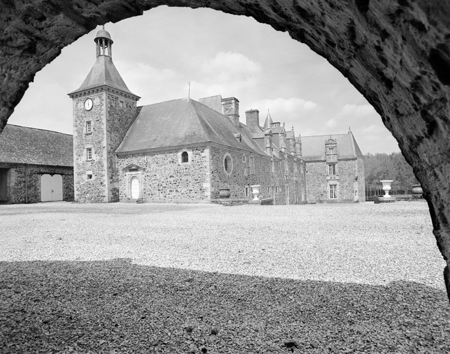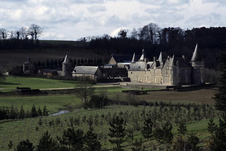 L'ancien manoir est attesté en 1350, en contre-bas des logis actuels et visible sur le cadastre de 1824 détruit au 19e siècle. Le château actuel a été commencé à la limite des 15e-16e siècles pour la famille Hay et terminé vers 1580. Vers 1860, importante campagne de travaux par l'architecte rennais Jacques Mellet : ajout de 3 tours cylindriques à l'aile sud, d'une tourelle en surplomb au milieu de la façade principale, reconstruction de la tour à l'angle nord-ouest. Vers 1890, la chapelle est entièrement redécorée par le peintre rennais Jobbé-Duval. Avant 1940, suppression de la tourelle en surplomb et de la tour dans l'angle ; vers 1950, suppression de la tour de l'angle sud-est, reprise du pignon avec remontage de la cheminée provenant du manoir de La Goderie à Erbrée et suppression de l'enduit.