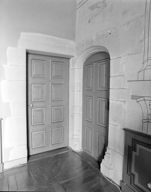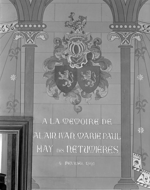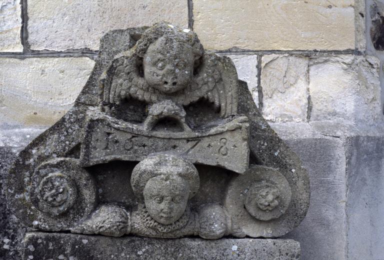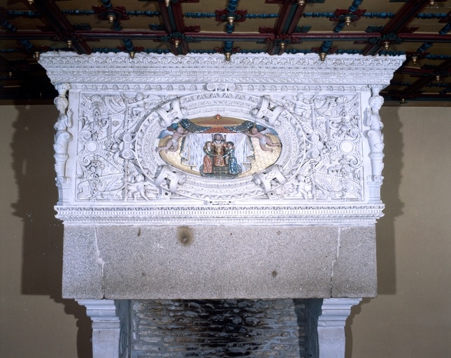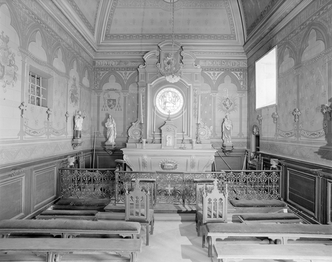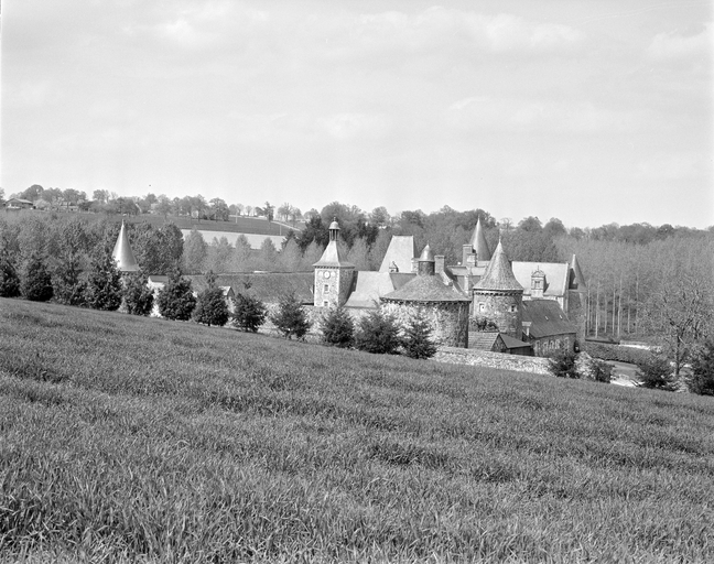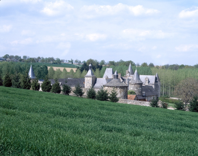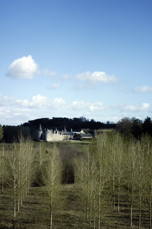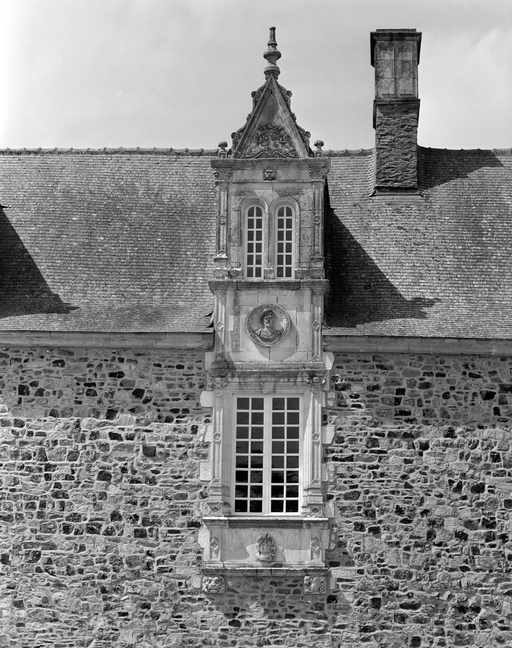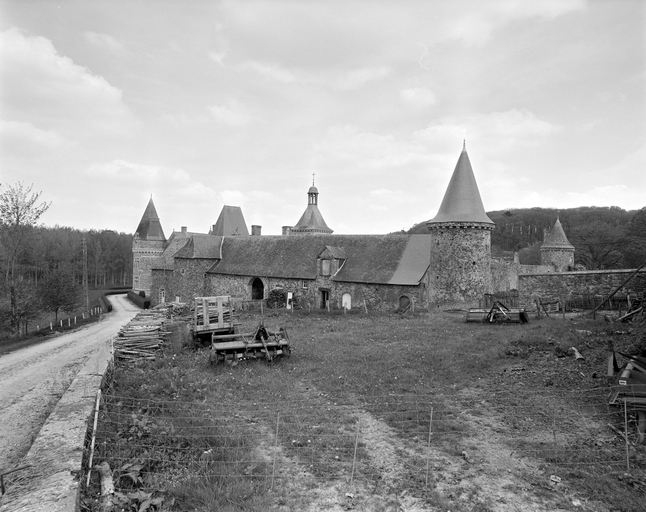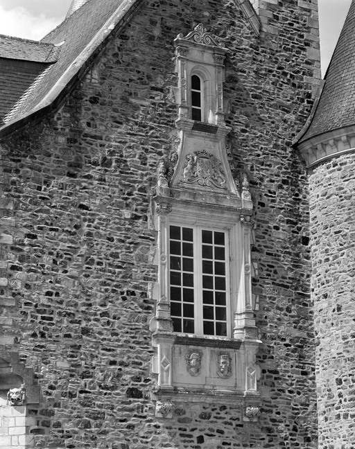 Typologieschâteau de plan en équerre, à chapelle d'attache, hagioscope, élément de défense, bouche à feu ; rhabillage. Néo-Renaissance