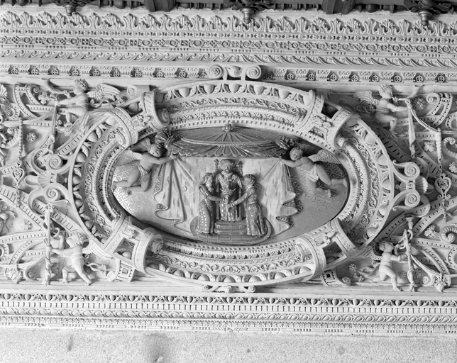 Sujet : bustes, support : appuis et dessus de l'étage carré.