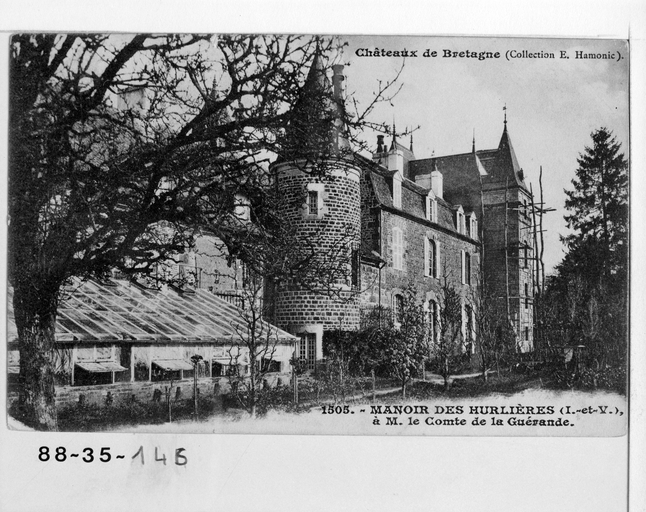 Le château actuel est le résultat de trois campagnes successives à partir d'un manoir du milieu du 15e siècle appartenant à la famille de Lignière, augmenté d'un corps de bâtiment vers 1730 pour la famille de Goyon, puis d'un pavillon et d'un jardin d'hiver vers 1890, pour le comte de La Guérande. Le sol du jardin d'hiver est recouvert d'une mosaïque probablement réalisée dans les ateliers d'Isidore Odorico isidore, mosaïste à Rennes. La chapelle du 18e siècle a été détruite et remplacée vers 1850 par une grotte de Lourdes, aujourd'hui désaffectée.