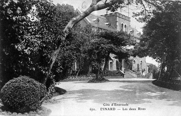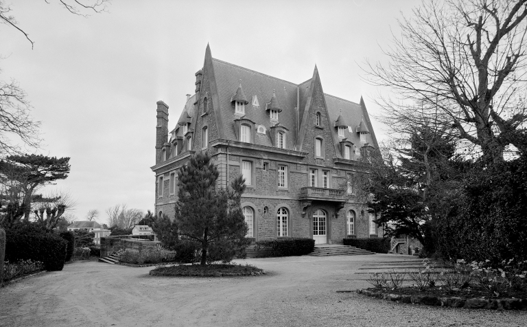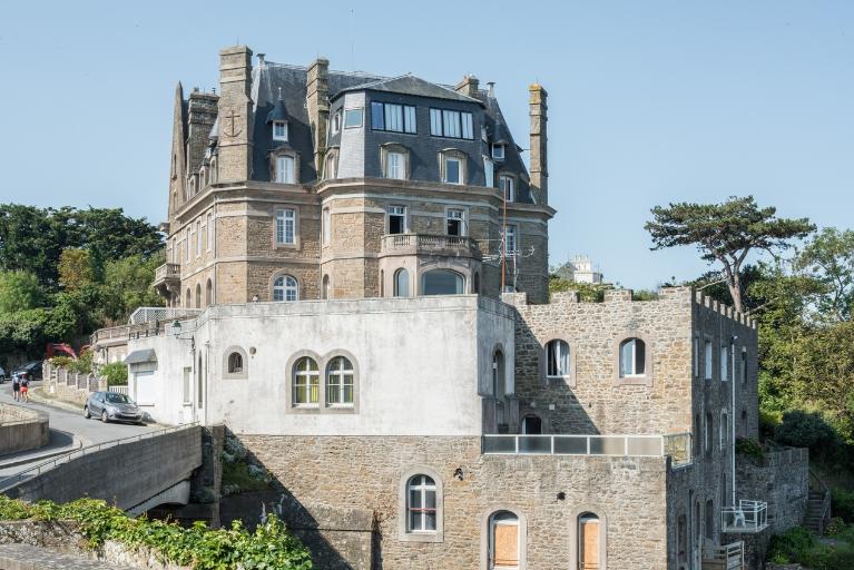 Maison construite en 1878 pour le comte libanais Joseph Rochaïd Dahdah, promoteur de la station balnéaire de Dinard. L'architecte serait selon certaines sources M. Liège de Saint-Servan. Lors du percement de la porte d'Emeraude vers 1910, la corniche est refaite ainsi que les communs et une partie du logis par l'architecte Neerman qui castellise l'ensemble par l'ajout de créneaux décoratifs. Le château est vendu après la grande guerre au comte de La Rochefoucaud et à la comtesse, née Simone Darblay, qui donnent à la demeure sa silhouette actuelle. En 1925, René Aillerie, architecte de la ville de Dinard, ajoute un étage de comble et modifie l'aspect extérieur du logis par l'ajout de pignons découverts masquant ainsi l'ancienne tour d'escalier située sur la façade antérieure sur jardin. Agrandissement également à la même époque du salon par un bow-window et construction d'écuries et remise. Le parc a été divisé en plusieurs lots en 1957, la chapelle transformée et les serres n'ont pas été conservées.