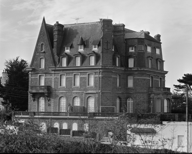 Situation privilégiée de la villa, construite sur un promontoire avec vue sur la Rance, la ville historique de Saint-Malo et la plage de l'Ecluse à Dinard. Le logis de grandes dimensions comporte 5 travées en façade antérieure, chaque niveau est séparé par un bandeau horizontal, la toiture imposante abrite deux étages de comble. Le hall d'entrée est éclairé de bas en haut par une verrière. Les communs situés en contrebas ont été aménagés dans les étages de soubassement qui donnent sur la porte d'Emeraude et sur la promenade des Alliés.