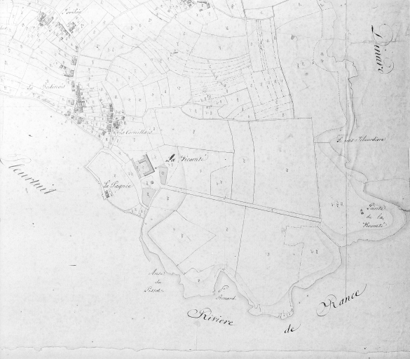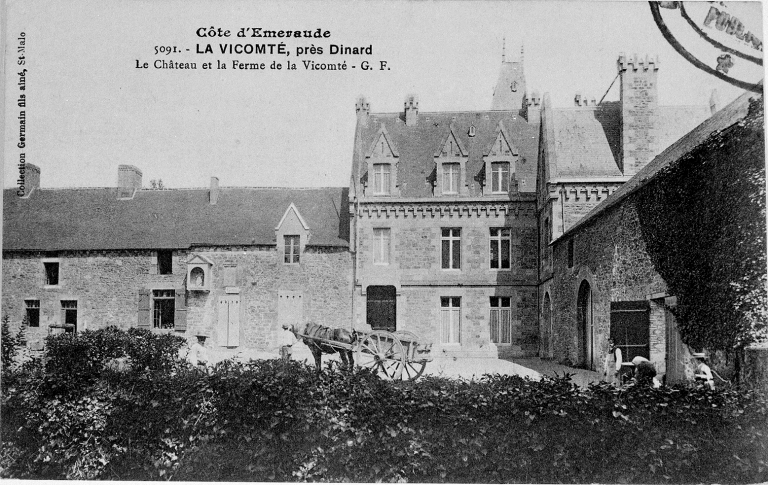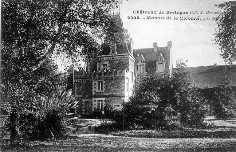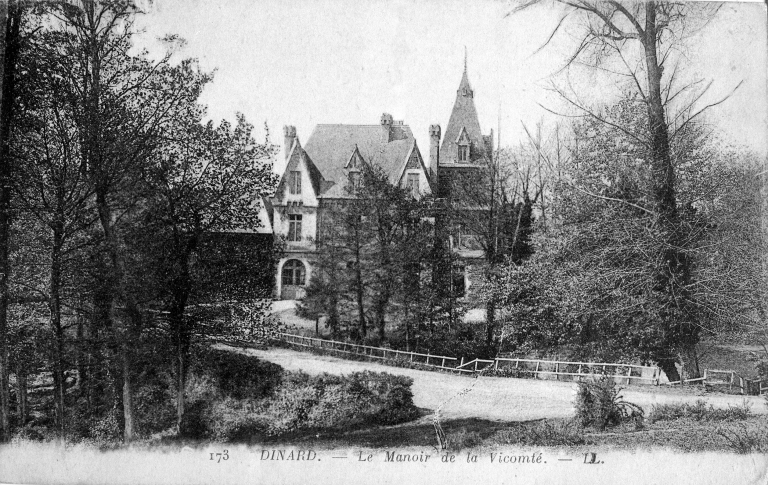 Le manoir de la Vicomté a pu être à l'origine la demeure des vicomtes de Poudouvre. Il est mentionné en 1513 sous le nom de la vicomté de la Motte. Il appartenait aux Chauchart en 1541 et en 1678. Il est plus tard la possession des seigneurs de Pontual et de la Perronnay. Le domaine était constitué d'une chapelle dédiée à Notre-Dame du Bois, d'une motte féodale, d'un colombier, de garennes et de pêcheries sur la Rance. La propriété est acquise par M. Bruzzo, inspecteur général des finances, qui la fait planter de bois et percer de chemins et de boulevards dans le 4e quart du 19e siècle. Le logis ainsi qu'une partie des communs sont reconstruits vers 1896 (année d'imposition) pour la famille A. Joyaux qui morcelle à cette époque une partie du domaine.