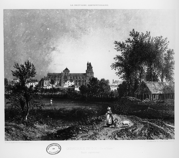 Cathédrale de Dol. Estampe par Gaucherel et Dauzats. In : TAYLOR, Jean, NODIER, Charles, CAILLEUX, Alphonse de. Voyages pittoresques et romantiques dans l'ancienne France. Paris : F. Didot, 1845-1846.