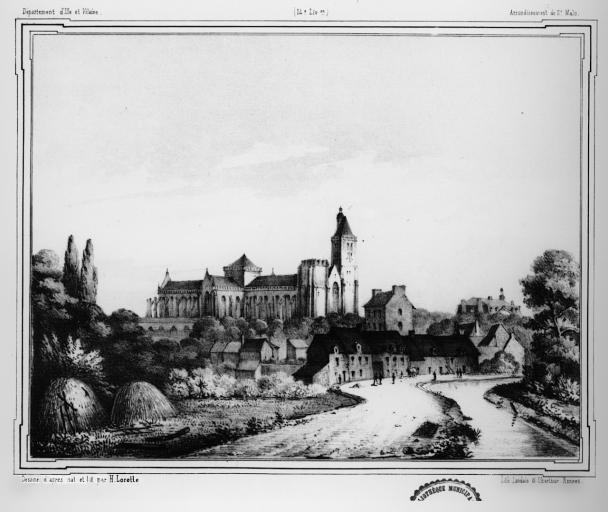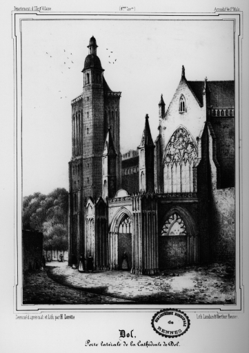La cathédrale de Dol. Dessin par H. Lorette, lithographie par Landais et Oberthur. In : Album breton. Paris : N. Coquebert, 1846.