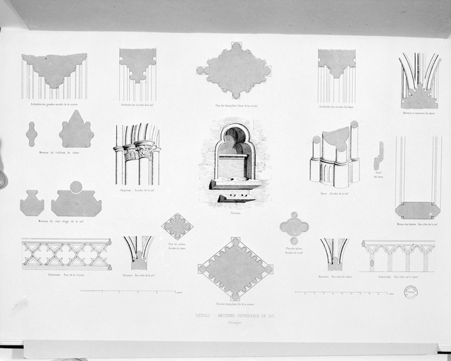 Détails, ancienne cathédrale de Dol. Estampe par Cloüet et Ollivier. In TAYLOR, Jean, NODIER, Charles, CAILLEUX, Alphonse de. Voyages pittoresques et romantiques dans l'ancienne France. Paris : F. Didot, 1845-1846.