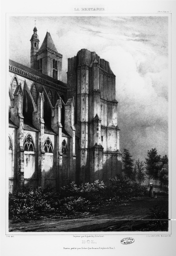 La cathédrale de Dol. Dessin par T. Drake, lithographie par Daniaud. In : Album vendéen. Paris : Imp. Lemercier, Lainé frères, éd. à Angers [s.d.].