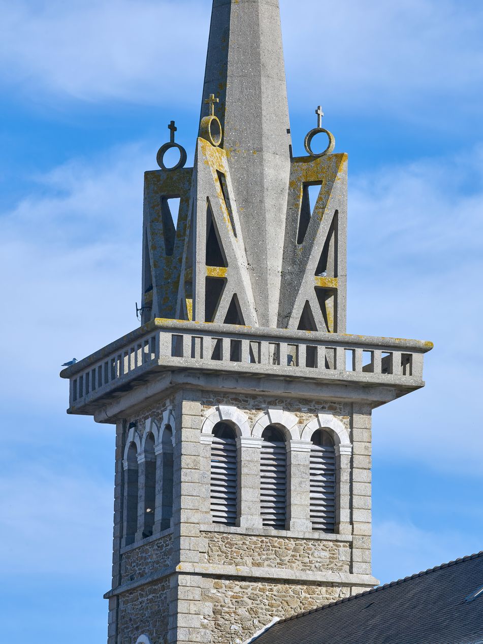 Plan allongé, lambris de couvrement, clocher-porche, chevet arrondi.