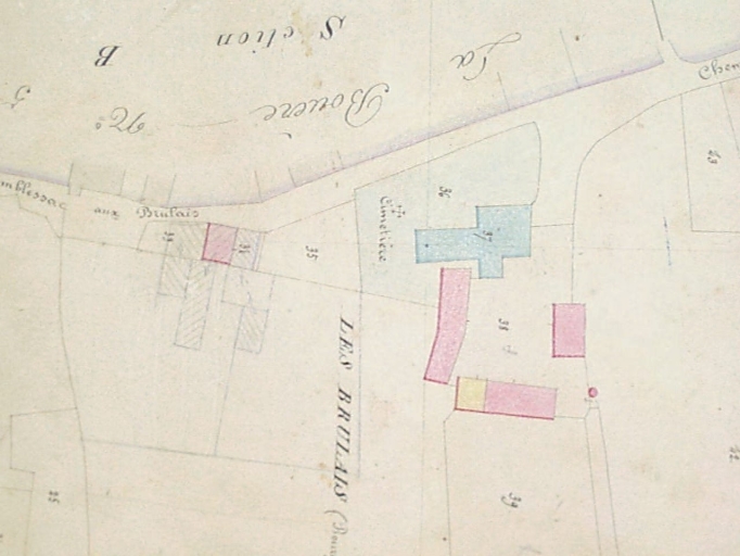 Plan cadastral napoléonien. Section D, quartier n°1 dit de l'église, échelle 1/1000e. Mairie des Brulais. s.d.