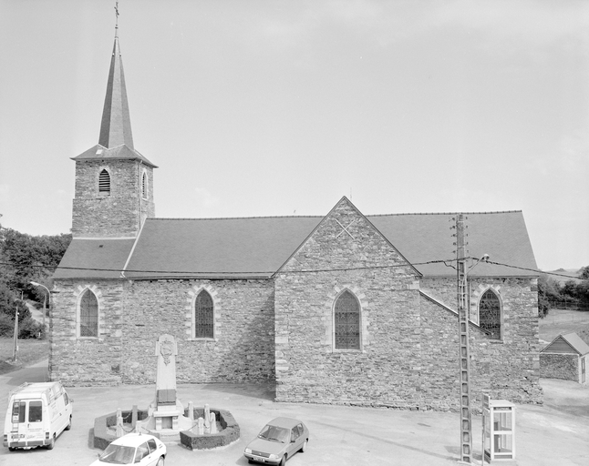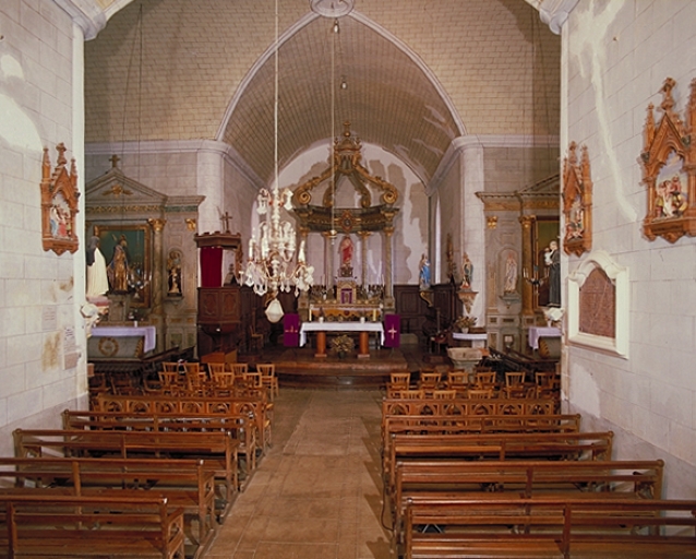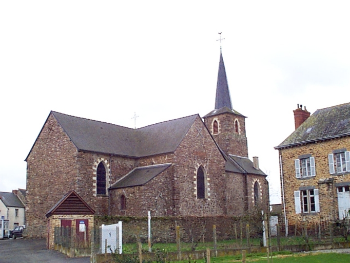 Plan en croix latine ; 1 vaisseau ; chevet plat ; clocher-porche. Toit à longs pans ; noue ; pignon couvert ; appentis ; flèche polygonale.