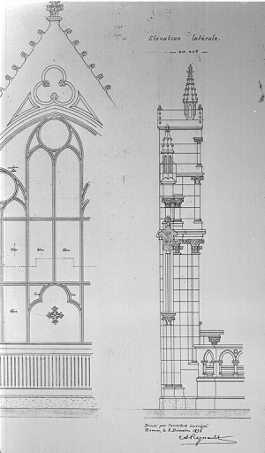Ensemble de dessins relatifs aux projets de construction de l'église et du mobilier religieux, signés ou attribués à A. Regnault, [1873-1901]. (A.D. Ille-et-Vilaine, série 0 (1037/...).