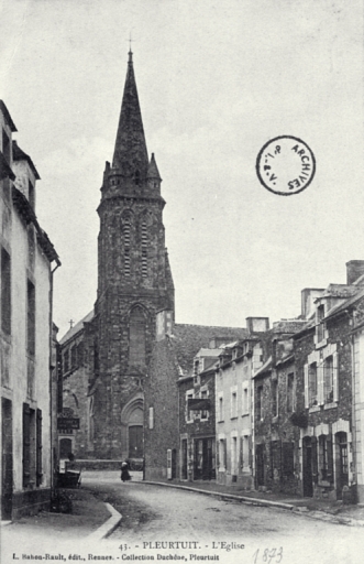 Église commencée en 1873, [date portée à la base d'un contrefort au chevet de l'église] sur les plans d'Arthur Regnault, qui dessine également une partie du mobilier. Plusieurs éléments du 12e siècle et du 14e siècle provenant de l'ancienne église ont été réemployés dont : la fenêtre à rosace au dessus du bas-côté nord, les arcades géminées dans la partie occidentale du même bas-côté et les colonnes à chapiteaux historiés, provenant de la croisée du transept. Escalier hors oeuvre détruit et flèche démantelée en 1941 par les troupes d'occupation. L´aménagement intérieur est très empreint des modèles d´Ille de France : colonnes rondes, tribunes, triforium et fenêtres hautes. Le maître autel, également de style néogothique (1900), est adossé à un chevet plat peu employé par l´architecte. Dessinée en 1867 et réalisée après la guerre de 1870, l´église de Pleurtuit est une des premières réalisations d´Arthur Regnault dans le style néogothique monumental.