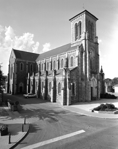 L'ancienne église paroissiale était située sur l'actuelle place Charles de Gaulle. Elle était composée d'une nef du 12e siècle, de deux chapelles privées au nord (l'une aux seigneurs de la Cour de Sixt, l'autre aux seigneurs de Pommery). Un arc triomphal séparait la nef du chœur. L'église actuelle a été construite en 1881 sur les plans de l'architecte nantais Liberge qui n´a pas construit d´autres églises sur le département. Les vitraux sont signés et datés : "Meuret et Lemoine, Nantes 1882 1883".