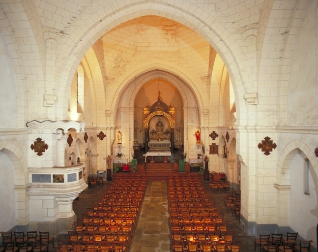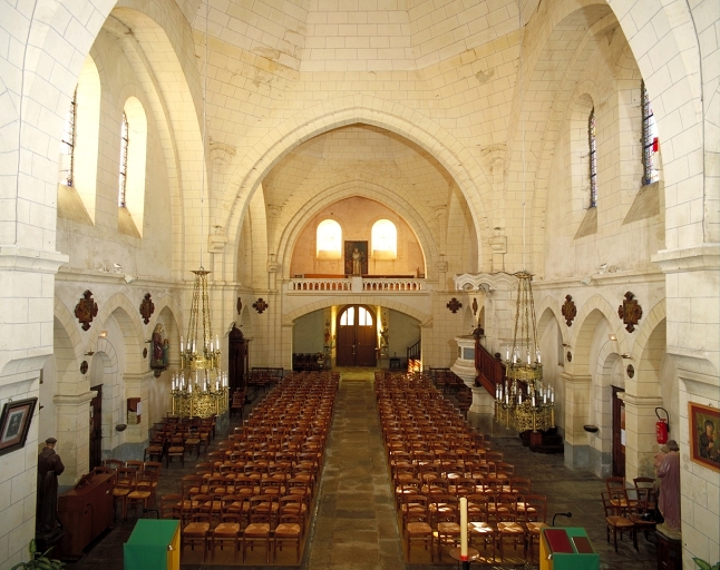 L'église actuelle a été construite sur un nouveau site sur les plans d'Arthur Regnault en 1890, qui dessine également une partie du mobilier. Arthur Regnault reprend les projets d´Aristide Tourneux qui prévoyait un petit édifice à nef unique, voûté d´ogives. Il ambitionne de réaliser des voûtes en forme de pyramide inspirées de Saint-Ours de Loches. Cette réalisation fera toutefois l´objet de malfaçon et dès l´année suivante les pyramides réalisées en parpaings de schiste ne sont pas étanches et de nombreuses infiltrations se sont produites au niveau des joints. De plus, les murs tendent à s´écarter sous la poussée des voûtes et d´importantes lézardes sont apparues. Pour opérer la remise en état Arthur Regnault sera obligé de renoncer à la disposition de la chaire à prêcher, prise dans l´épaisseur du pilier afin que celui-ci soit comblé.